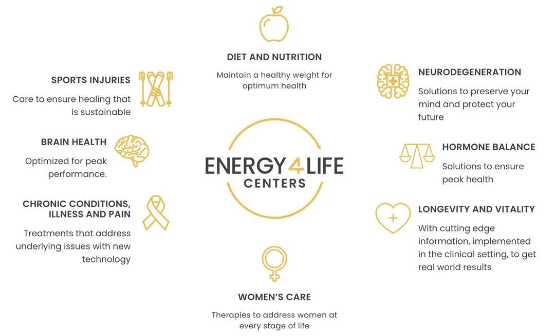 At E4L, we deploy cutting-edge therapeutics through an ancient lens for optimal wellness in 8 key areas: